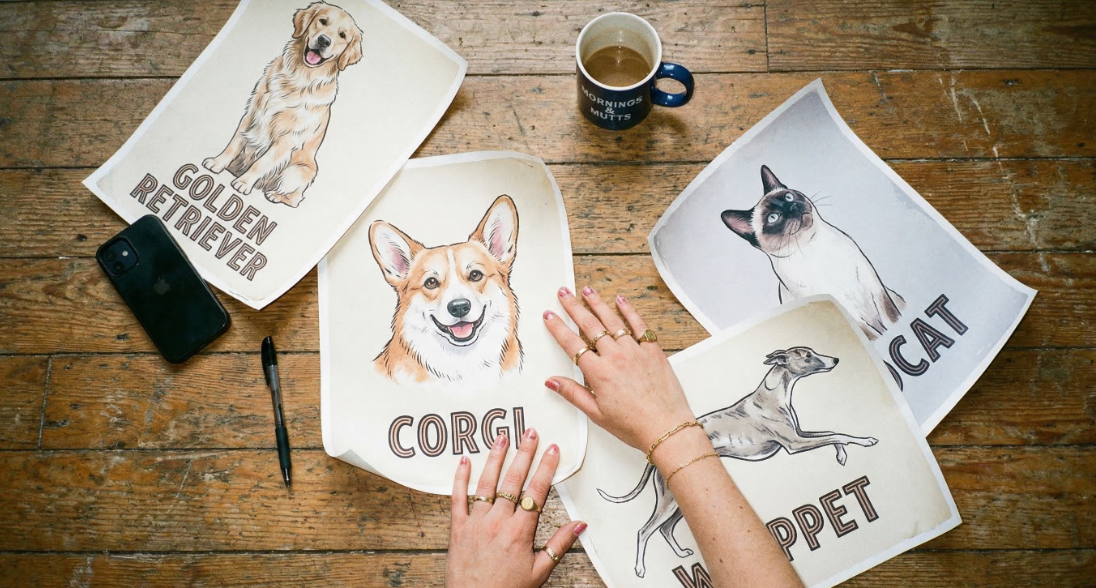 A golden retriever owner is rarely searching for a "dog poster." They are searching for a golden retriever poster. A whippet owner wants a whippet illustration. A corgi owner wants something that unmistakably resembles their corgi.