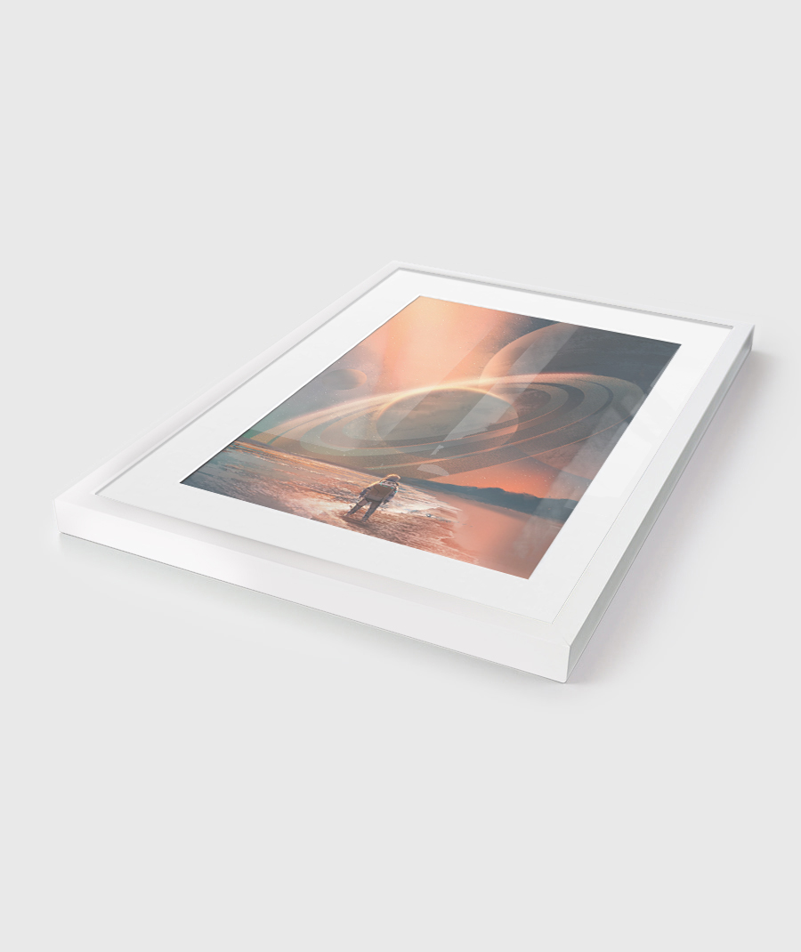 A matte print with a white passepartout mat and a white frame - the most minimal combination we offer. The mat runs from 4 cm wide on the smallest size up to 7 cm on the largest, creating a generous border that feels clean and gallery-appropriate. Simple without being empty. A timeless passepartout print on demand option.