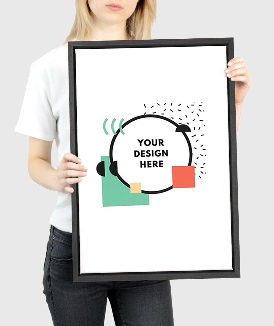 A premium black wood floating frame that gives your canvas a bold, dramatic gallery edge.
